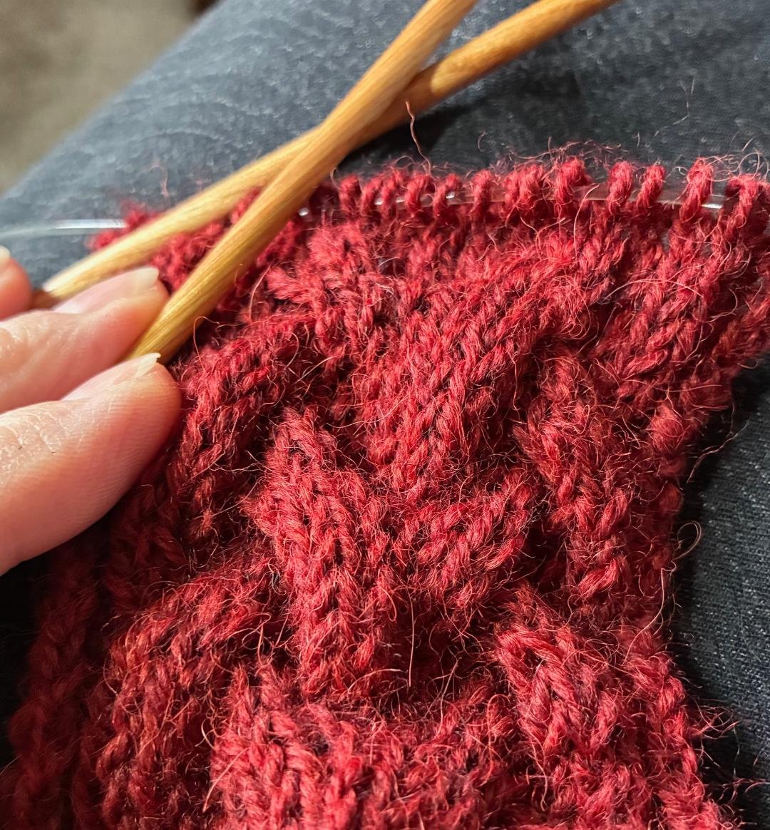 Required supplies: size 7 knitting needles, straight or circular, cable needles, and one skein Berroco Alpaca Light.